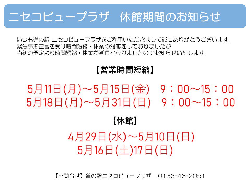 「新型コロナウイルス感染症」に関する、政府からの「緊急事態宣言」を受け、当道の駅でも時間を短縮して営業しておりましたが、