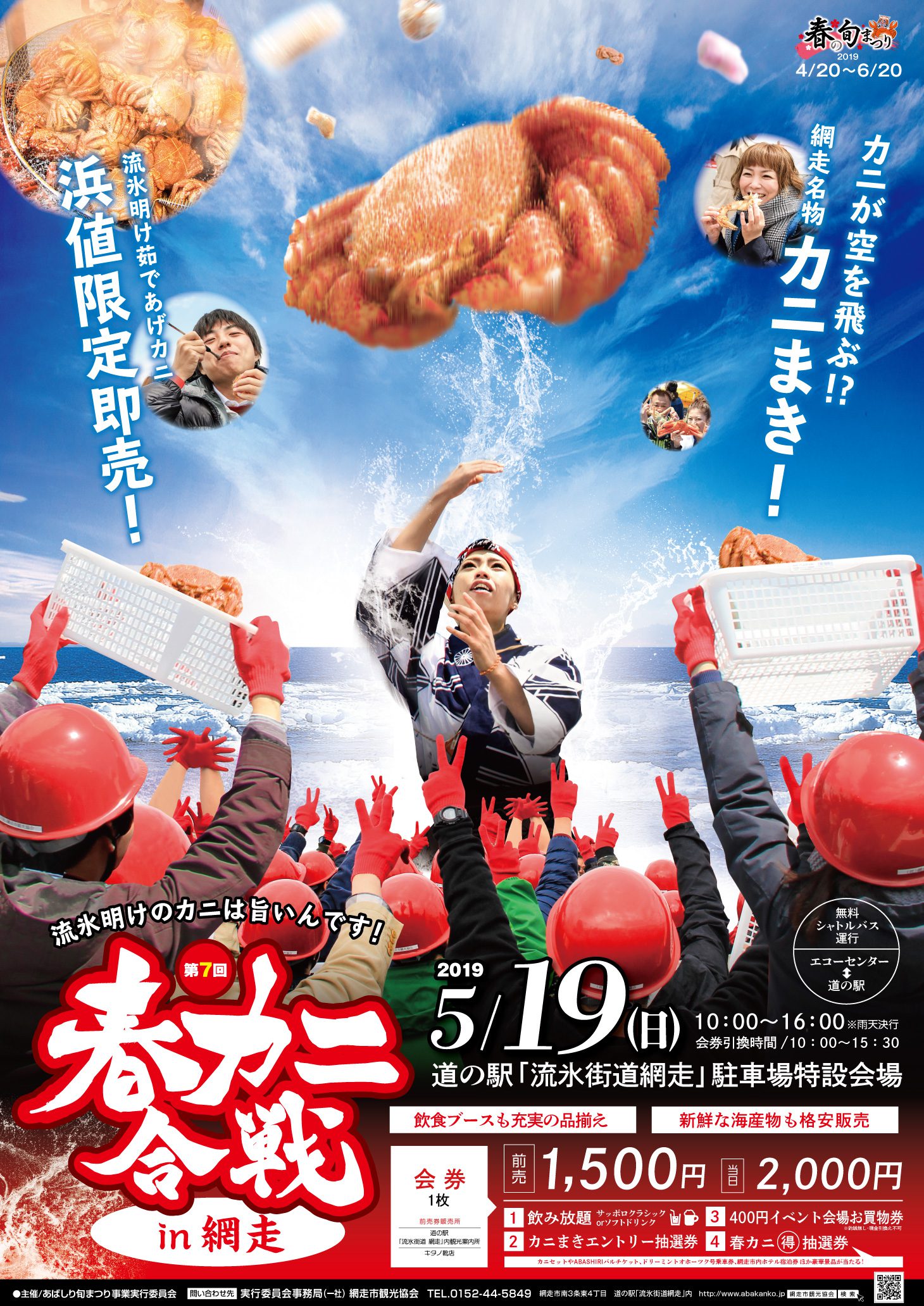 2019年 5/19(日)春カニ合戦in網走 開催!!流氷明けのカニは旨いんです!網走の春を告げる大人気イベント!今年も開催!前売券好評発売中!!