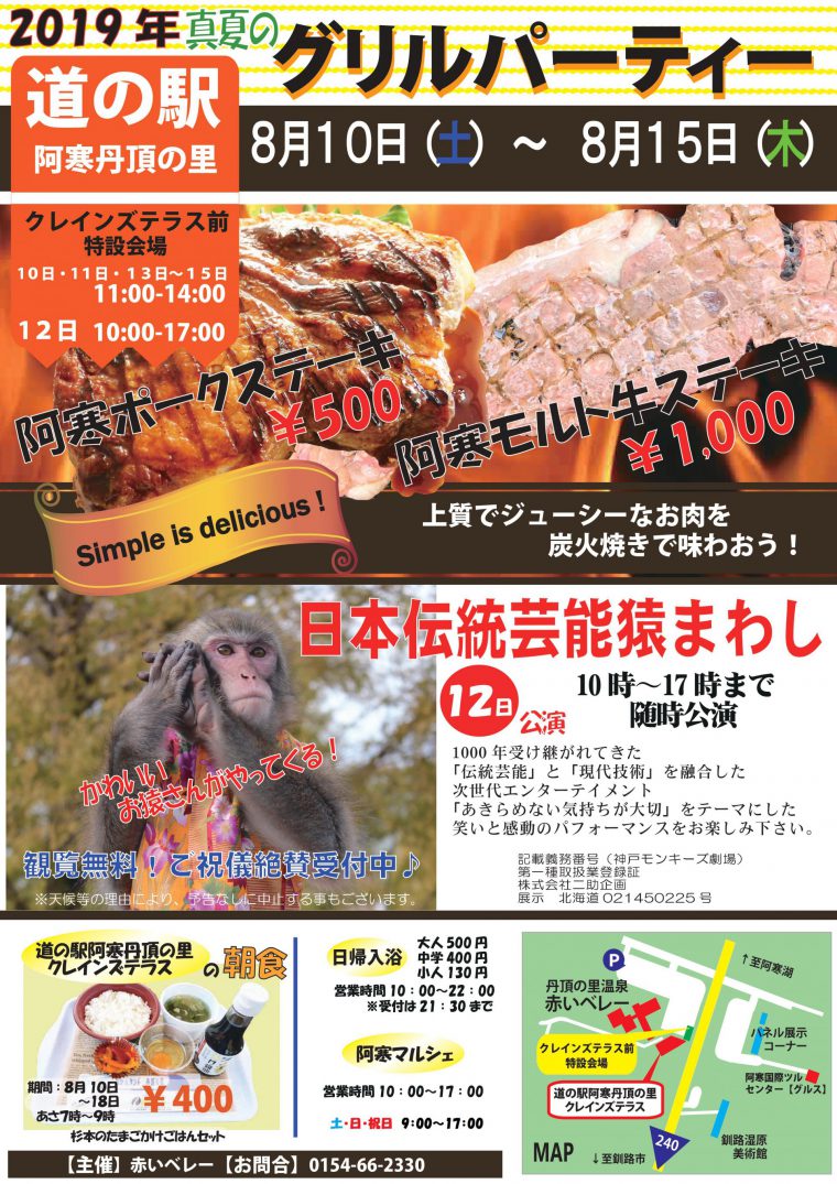 道の駅阿寒丹頂の里では8月10日から8月15日に「真夏のグリルパーティー」を開催、
