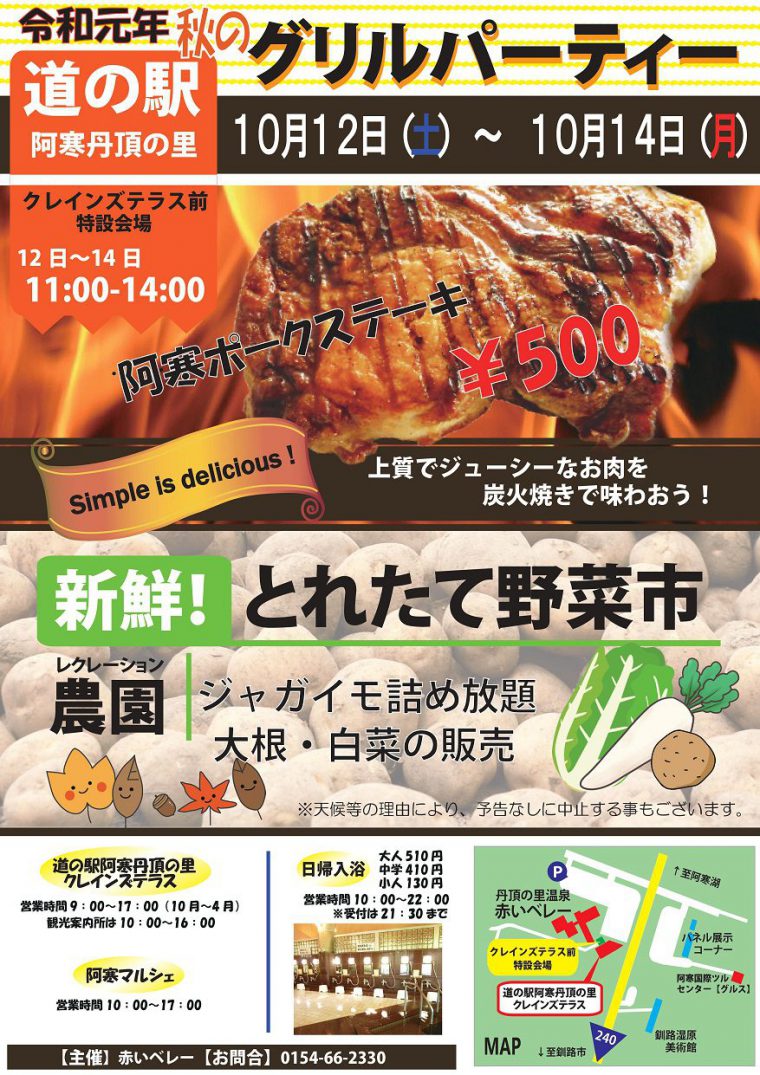 道の駅阿寒丹頂の里では10月12日から10月14日に「秋のグリルパーティー」を開催します!