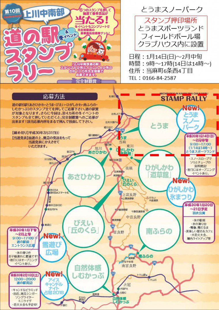11月1日~開始しております「上川中南部道の駅スタンプラリー」の冬イベントが始まります。今期は通常のスタンプに加えて計4か所で行われる期間限定のイベントでスタンプを押印できます。イベントも道の駅もすべて集めると完全制覇賞に応募できますので是非ご参加下さいませ。