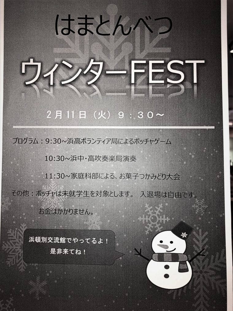 2月11日(火)祝日に、浜頓別高校の生徒さん主催のイベントを開催致します。