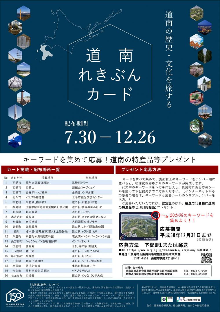 道南れきぶんカードは在庫がなくなったため、配布終了になります。 なお、1階物産センターレジ横にてQRコードの読み取りが可能です。 引き続き、道南れきぶんカードを宜しくお願い致します 詳細はこちら 印刷する