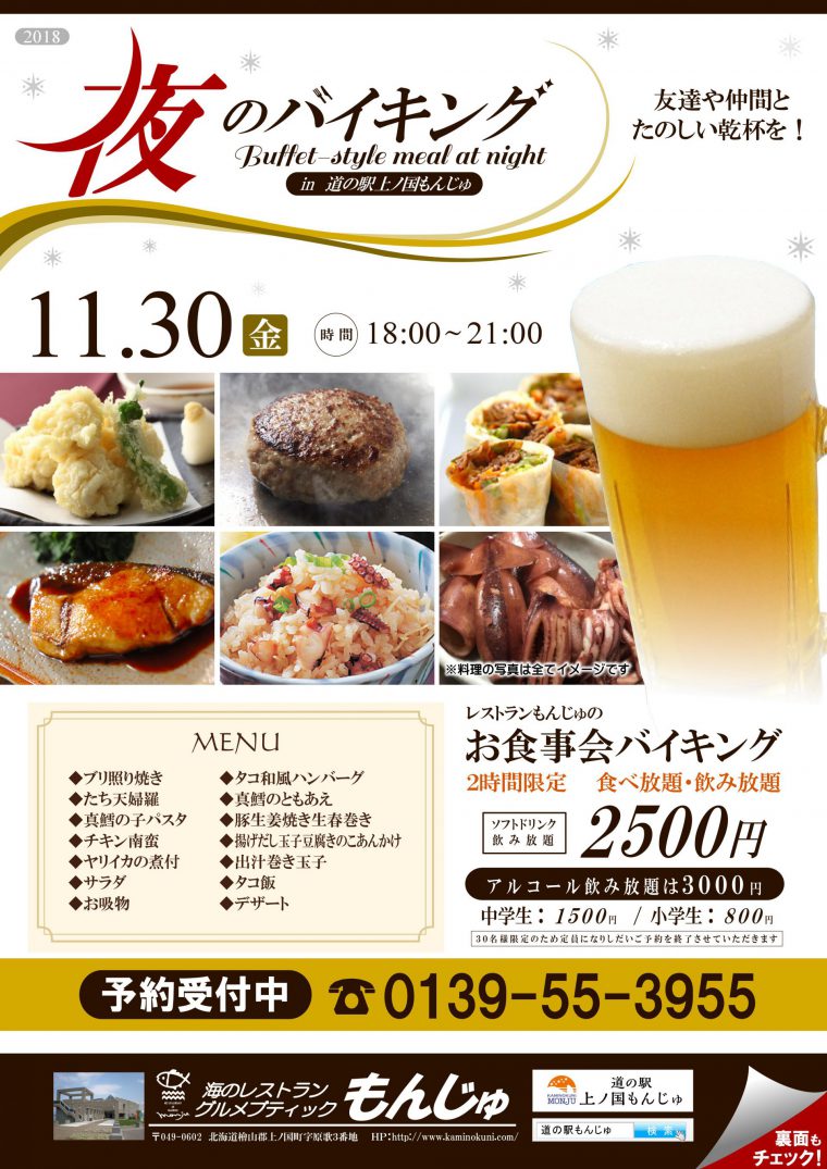 【レストラン】11/30(金)18:00~ 夜のバイキング開催のお知らせ(満員御礼)