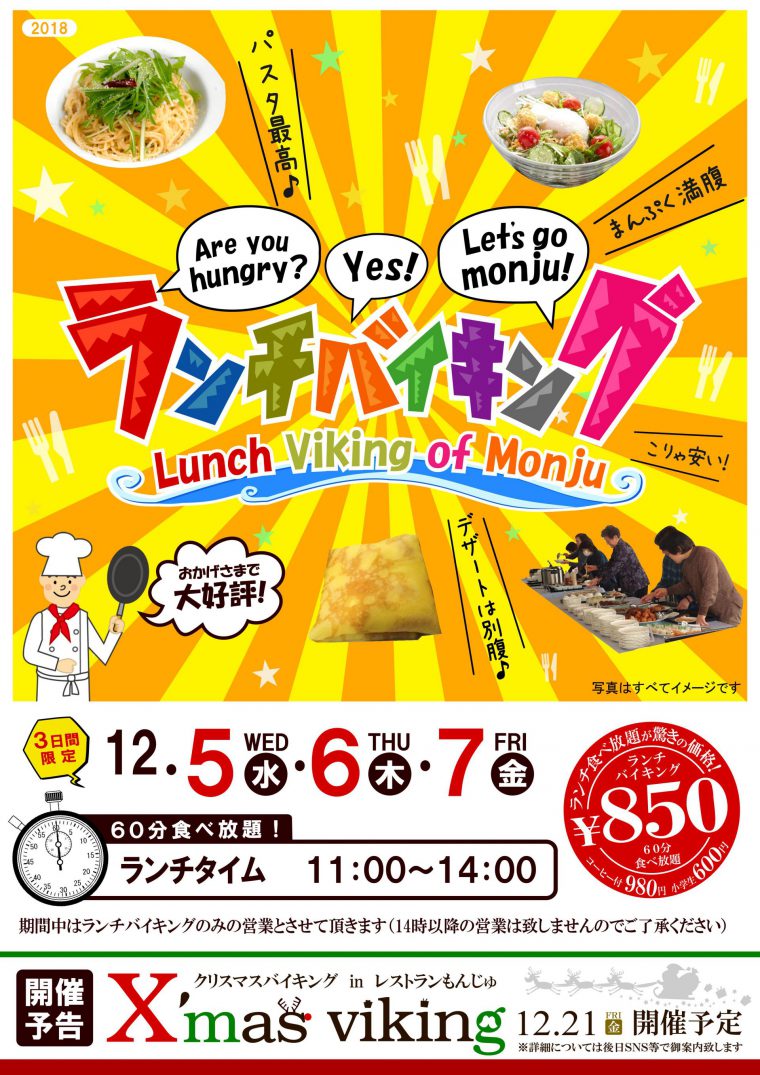 12/5(水)6(木)7(金)はもんじゅでランチバイキング!