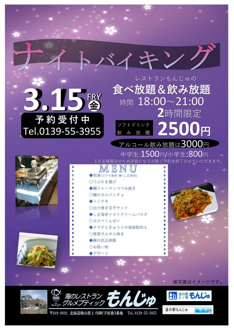 料金:ソフトドリンク飲み放題付き食べ放題2,500円