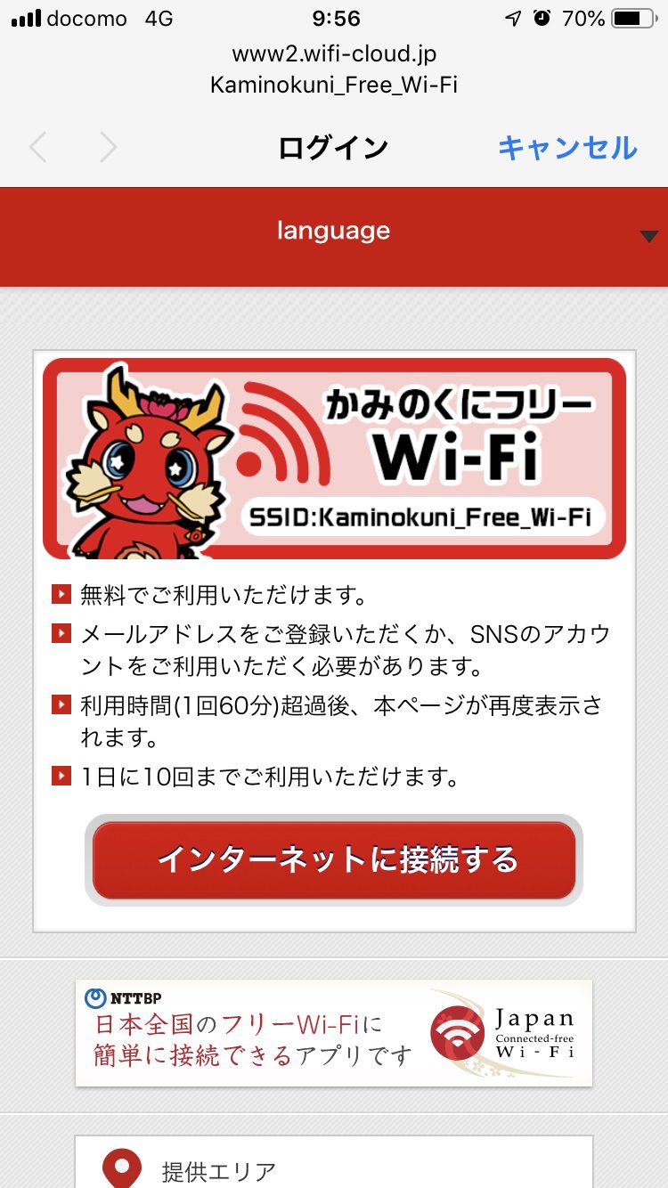 【お知らせ】かみのくにフリーWi-Fi設置のご連絡