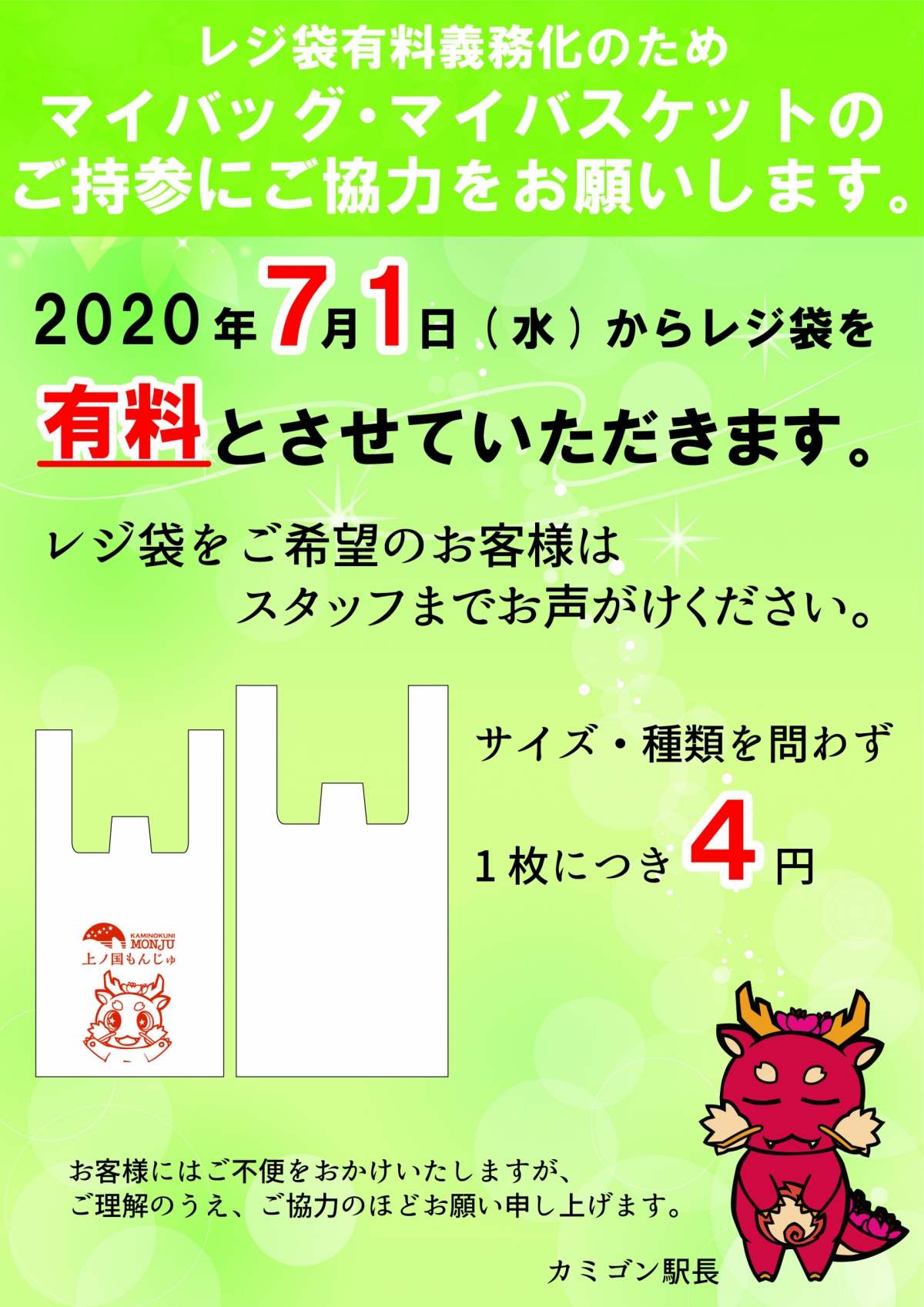 レジ袋の有料化制度に伴い、7月1日(水)よりレジ袋を有料とさせて頂きます。