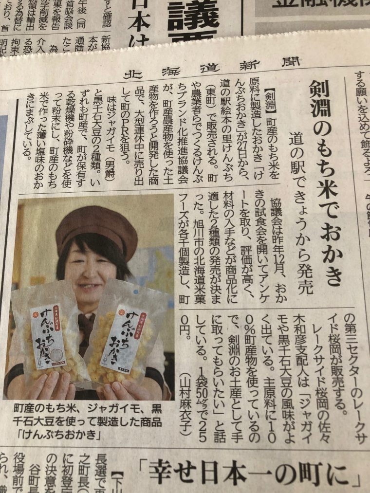 剣淵町の新商品「けんぶちおかき」登場!!