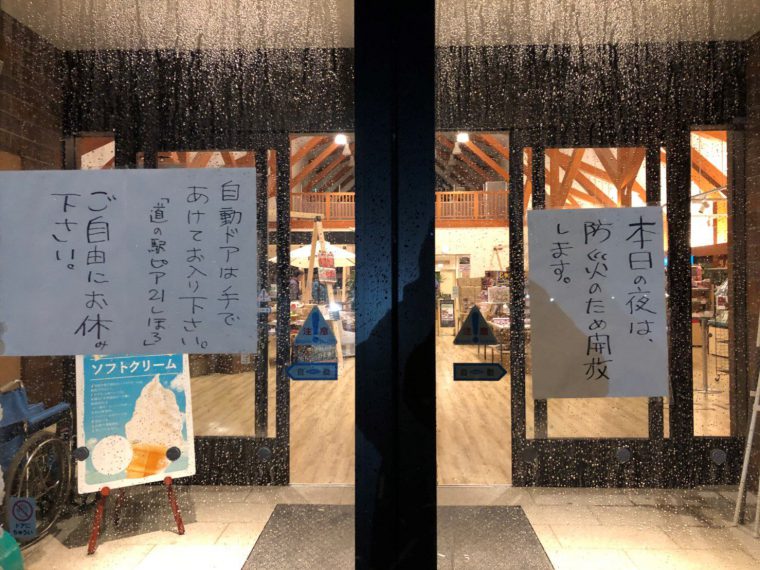 只今、道の駅ピア21しほろでは防災のため一時避難開放中です。