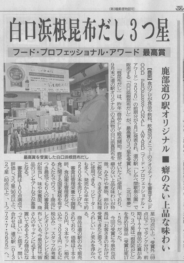 函館新聞様、4月3日の朝刊に掲載いただきました!