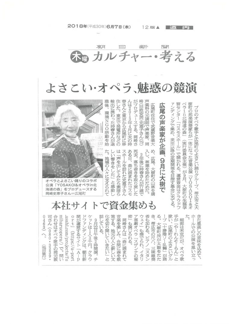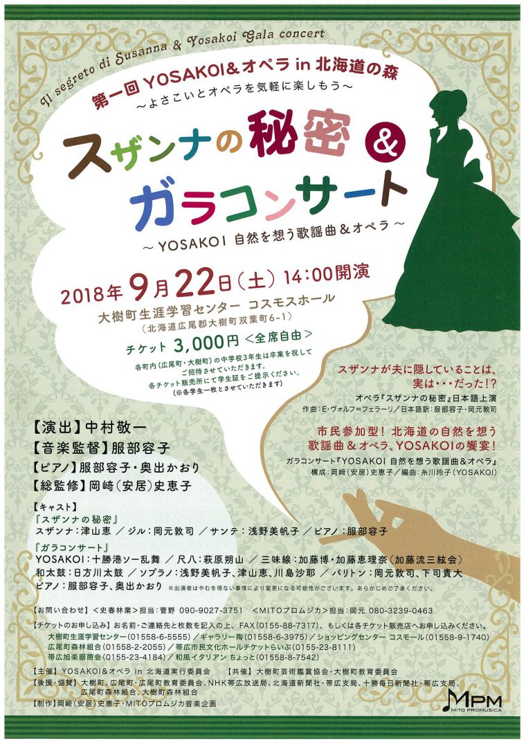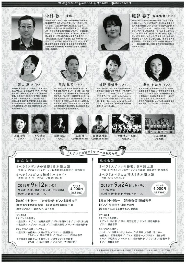 ≪前売チケット販売中!≫第1回よさこい&オペラin北海道の森 スザンナの秘密&ガラコンサート開催のお知らせです。