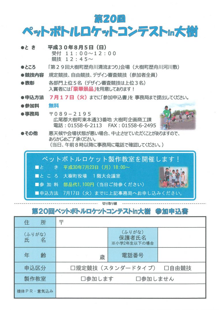 第20回ペットボトルロケットコンテストin大樹を開催致します。