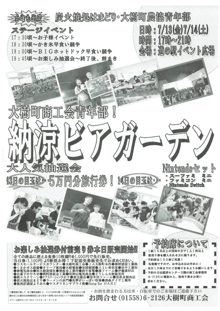 ≪前売券情報≫「納涼ビアガーデン」(大樹町商工会青年部主催)お得な前売チケット販売中!