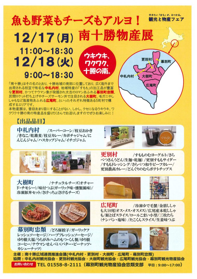 ≪札幌で開催!≫「南十勝物産展」開催のお知らせ