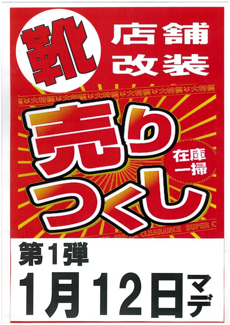 2019年1月12日(土)まで、店舗改装セールを実施中です。