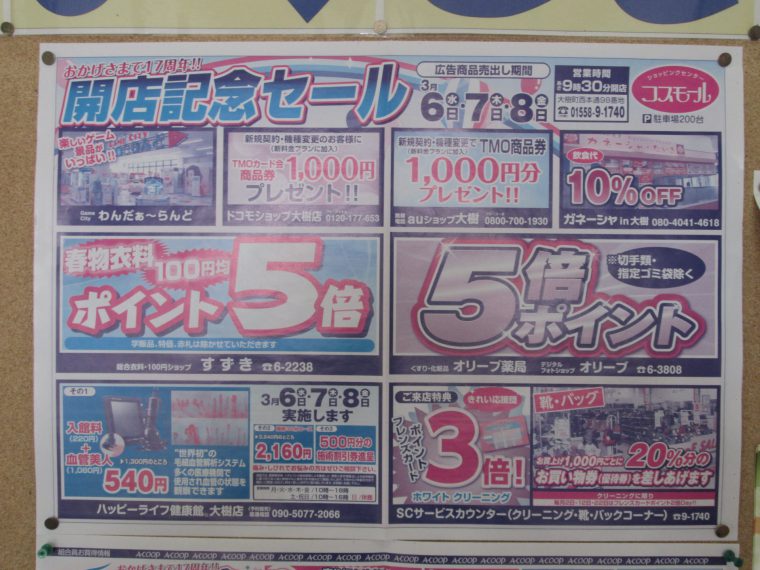 おかげさまで17周年!!道の駅内「ショッピングセンターコスモール」開店記念セール実施中!