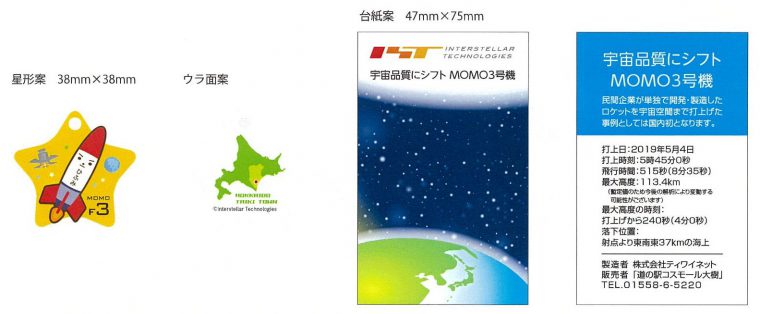 29日から当道の駅特産品コーナーでは今年5月に民間初宇宙空間に到達した「宇宙品質にシフトMOMO3号機」キーホルダーを販売開始致します。
