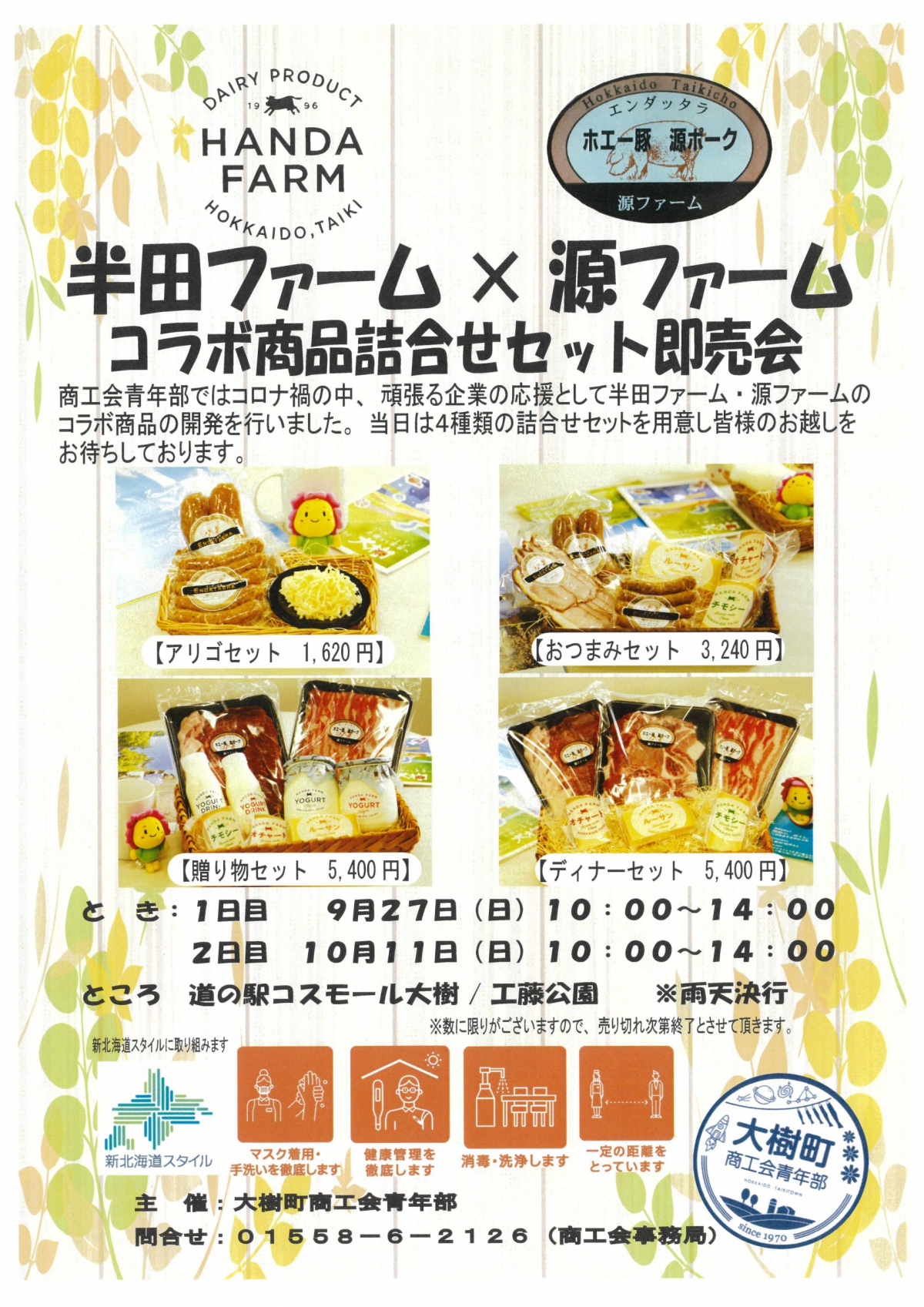 の2日間大樹町商工会青年部主催『半田ファーム×源ファームコラボ商品詰合せセット即売会』を開催致します。