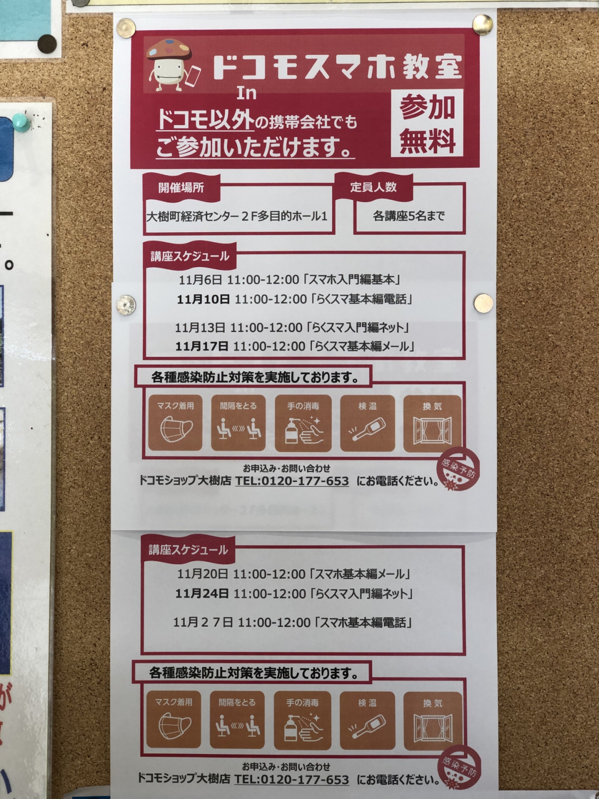 「ドコモスマホ教室」が当道の駅2階の多目的ホールで開催されます。