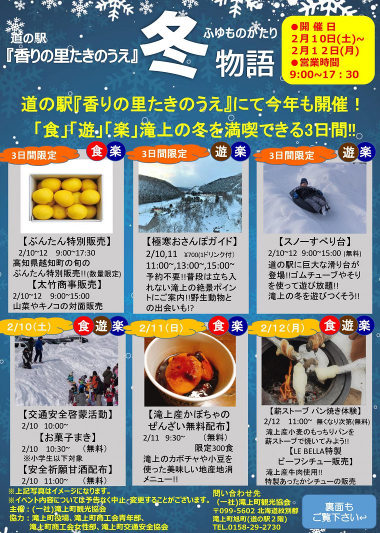 「食」「遊」「楽」滝上の冬を満喫出来る3日間となっております。
