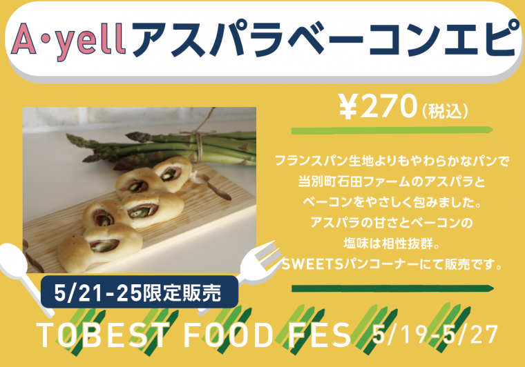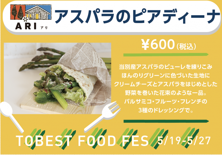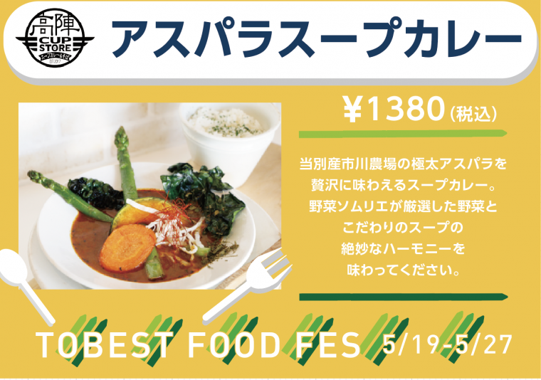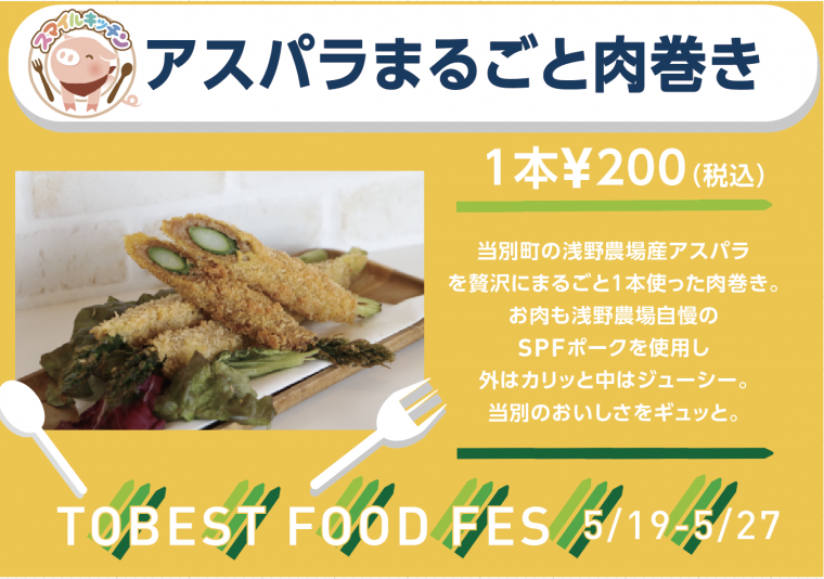 道の駅とうべつでは5/19-27の期間中TOBEST FOOD FES(トーベストフードフェス)を開催いたします。