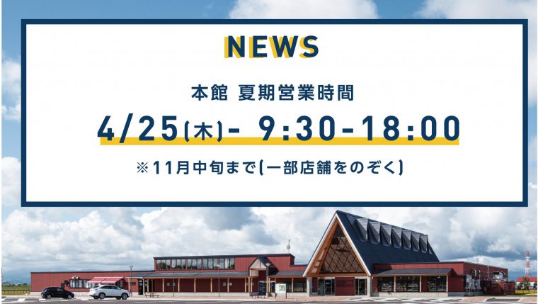 4/25- 夏期営業時間開始・3/31 営業時間変更のおしらせ