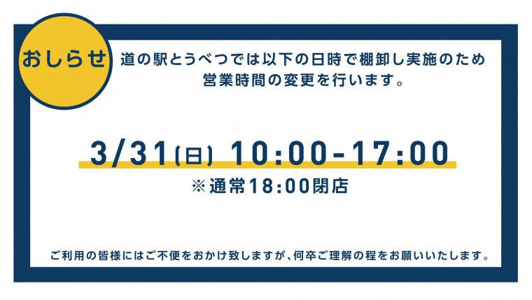 2019年3月12日 【北欧の風 道の駅とうべつ】からのお知らせ