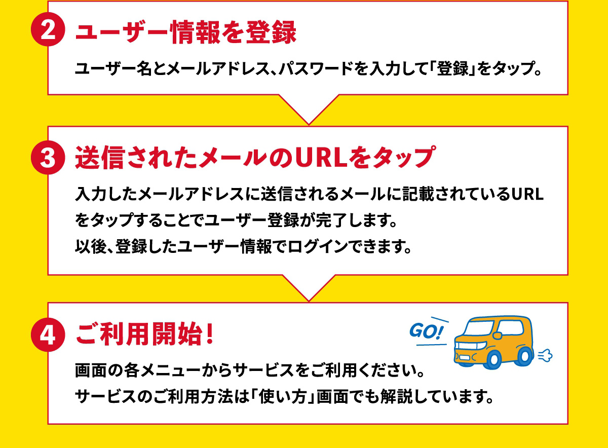 サービスのご利用方法は「使い方」画面でも解説しています。