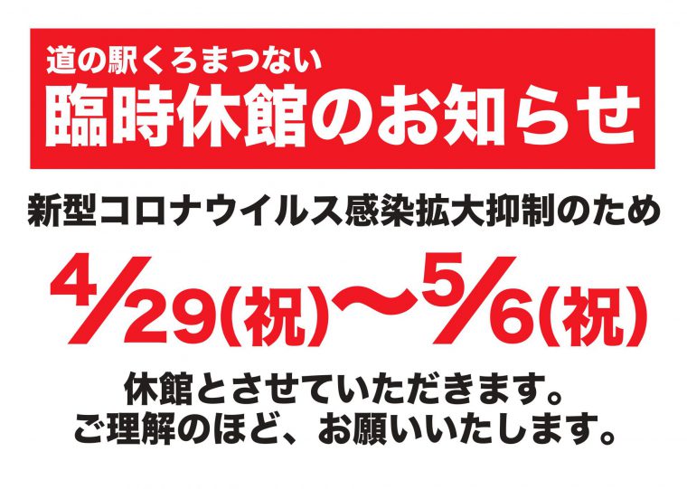また、ゴールデンウィーク期間中の4月29日〜5月6日は「臨時休館」とさせていただきます。