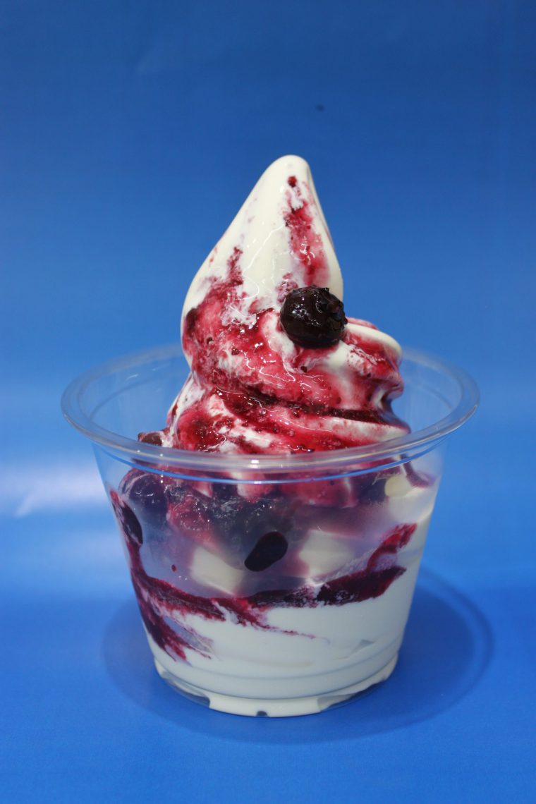 甘酸っぱいブルーベリーソースはソフトクリームと相性抜群です!