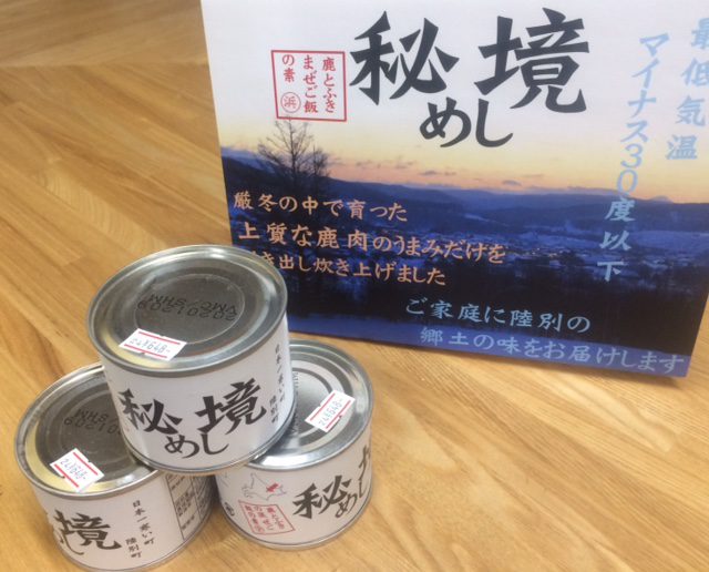 町内でとれた鹿肉とふきのまぜごはんの素。