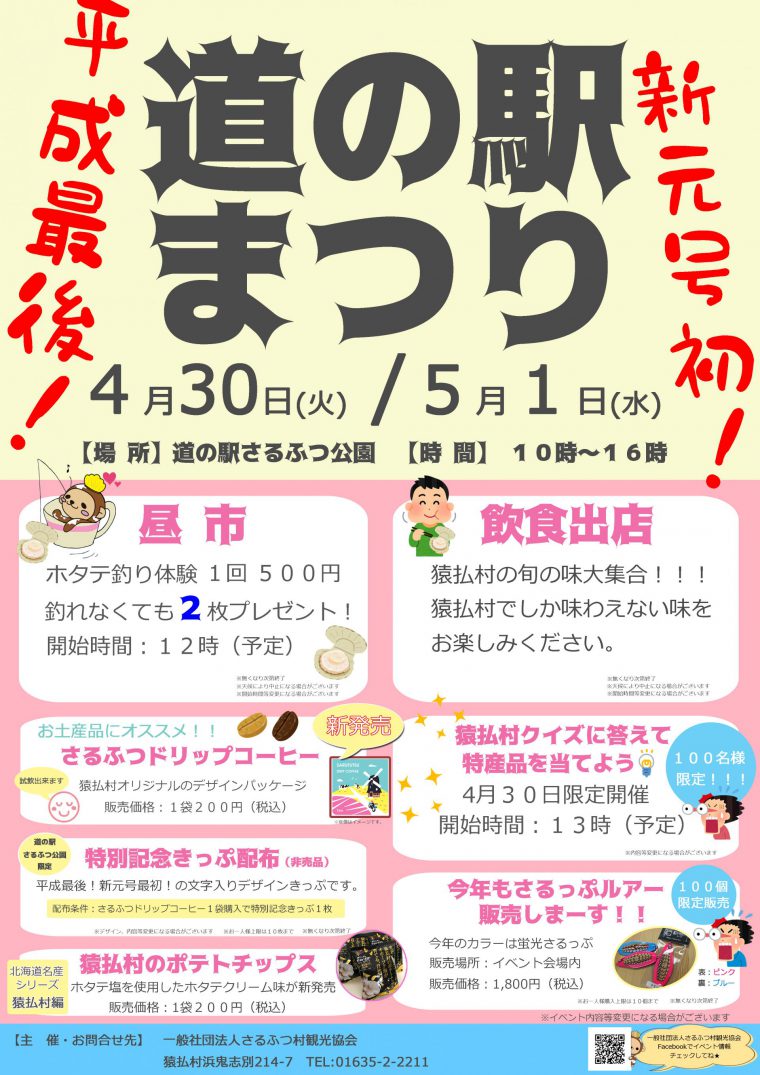 平成最後の日!令和最初の日の二日間!道の駅さるふつ公園ではイベントを開催します。
